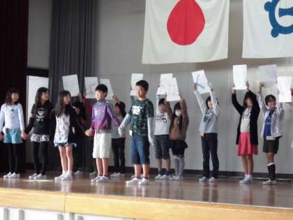 エコスクール運動を紹介しました!【10月25日(火)の4年生】 公開日 2016/10/25 更新日 2016/10/25 4年 全校のみんなの前で4年生が現在行っているエコスクール運動の紹介をしました。学校全体でエコに取り組めるように工夫をした発表をしました。