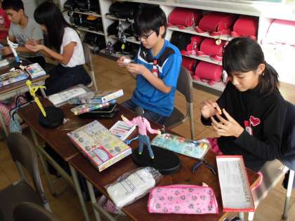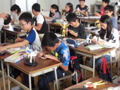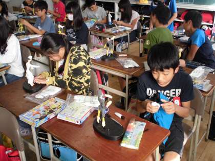 どこの部分にどのような色の粘土をつけていくか考えています。
