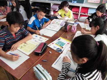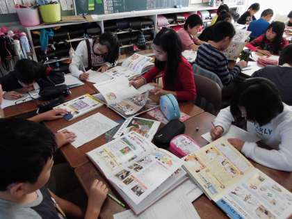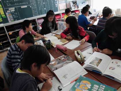調べたことを紙に書いてまとめます。集中して取り組んでいました。