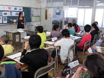 英語の授業で、外国の名前を習いました。どこへ行きたいか英語で質問し、答える練習もしました。