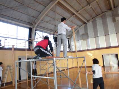 児童の下校後、11月11日〜13日に行われる展覧会の会場作りをしました。木の枠を組み立て、各学年のスペースを作り、平面作品を貼る台紙を作成しました。この会場が、子どもたちが作成した作品できれいに飾られるのがとても楽しみです。一人一人が工夫した作品つくりを進めていますので、展覧会を是非ご参観ください。
