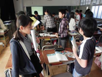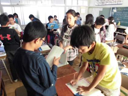 国語の授業【10月27日(木)の6年生】 公開日 2016/10/27 更新日 2016/10/27 6年 今日は国語の時間に宮沢賢治の「やまなし」を読んだ感想をペアになって話し合いました。いろいろな感想があり、考えを深めていました。