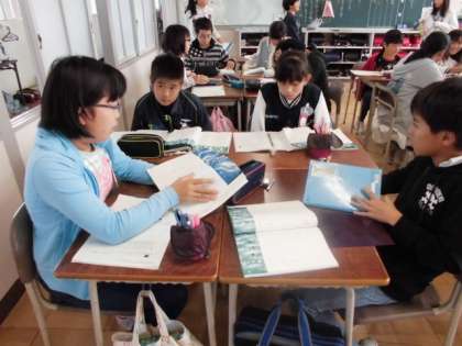 朗読の工夫【11月1日(火)の6年生】 公開日 2016/11/01 更新日 2016/11/01 6年 国語の時間に、どのように朗読したらいいか班で意見を出し合い考えました。みんなの朗読を聞くのが今からとても楽しみです!