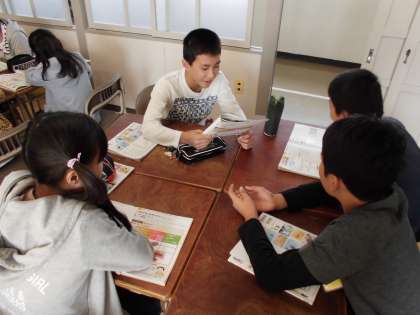 まかせてね今日の食事【11月2日(水)の6年生】 公開日 2016/11/02 更新日 2016/11/02 6年 家庭科の授業では、一人一人が1食分の献立を考えました。グループで自分の献立を発表しました。いろいろな献立があり、考えを深めることができました。
