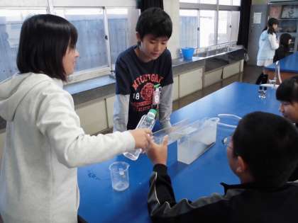 地層のでき方【11月5日(土)の6年生】 公開日 2016/11/05 更新日 2016/11/05 6年 理科の時間です。 石や化石が入っている地層はどのようにしてできるのか、水を流す装置を使って調べました。