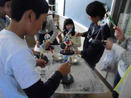 展覧会の作品の仕上げでニスをぬりました。「テカテカになって、高級感が出た〜」と喜んでいました。