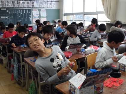 電流のはたらきを調べよう その2【11月8日(火)の5年生】 公開日 2016/11/08 更新日 2016/11/08 5年 説明書とにらめっこしながら、部品を間違えないように作りました。 みんながんばったね!