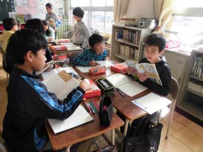 国語の時間にグループで意見を出し合って、それぞれの段落をまとめました。