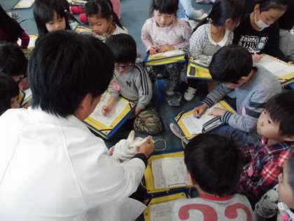 うさぎとなかよくなろう その2【11月16日(水)の1年生】 公開日 2016/11/16 更新日 2016/11/16 1年 うさぎの心臓の音を聞かせてもらいました。とても速く動いていてびっくりしました。耳も触らせてもらったら、堅かったです。体と足は、ふわふわでした。歯が全部で26本もあるなんて知りませんでした。色々なことが分かってうれしかったです。