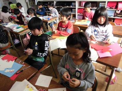 その後、実際にしかけカードを作ってみました。作り方を読みながら、みんな一生懸命作ることができました。