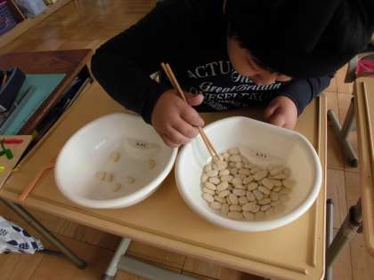 手先のトレーニング【11月17日(木)のたんぽぽ】 公開日 2016/11/17 更新日 2016/11/17 たんぽぽ 手先を動かすトレーニングをしました。糸通しや豆つかみ、魚つりを通して集中力も鍛えました。