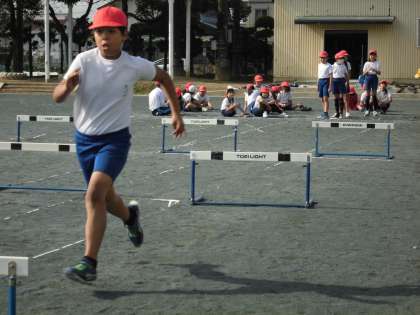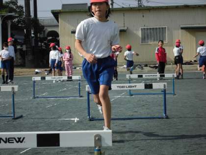 走れ!跳べ!ハードル走! 【11月17日(木)の4年生】 公開日 2016/11/17 更新日 2016/11/17 4年 体育では、40mハードル走を行っています。 より低く、安定した歩幅で跳ぶことを意識して、ハードル無しで走る40m走の記録にどれだけ近づけるかに挑戦しています。