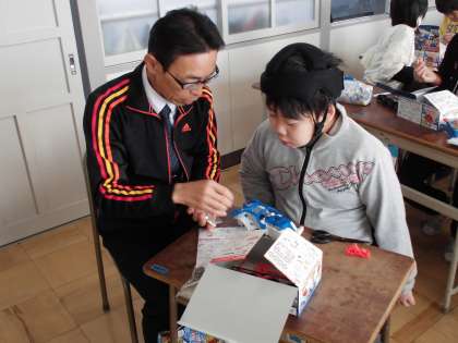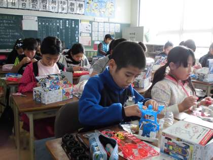 コイル製作中! 【11月17日(木)の5年生】 公開日 2016/11/17 更新日 2016/11/17 5年 電磁石のはたらきを調べるために、コイル作りに挑戦しました。 すき間を空けないよう、50回銅線を巻くのに、みんな必死! 「できた〜」「無理〜」 いろいろな声が聞こえてきました。