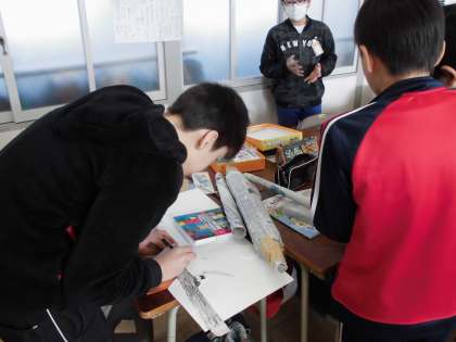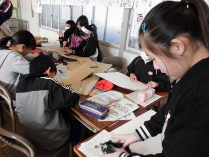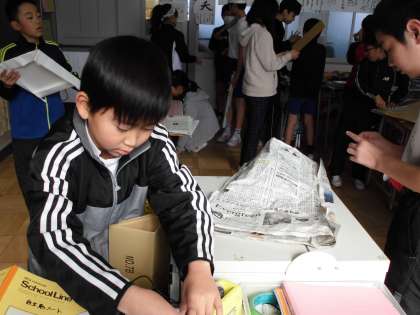 小道具づくり【1月26日(木)の5年生】 公開日 2017/01/26 更新日 2017/01/26 5年 英語の授業で「桃太郎」の劇をします。英語のセリフを覚えたり、小道具を作ったりしました。どんな劇になるか楽しみです。