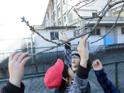 冬見つけ 1月26日(木)の2年生 公開日 2017/01/26 更新日 2017/01/26 2年 今日は、校庭で冬見つけ。さざんかやパンジーの花を見たり、さくらの木の芽が少しずつ膨らんでいるのを見たり・・・。寒くても、少しずつ春が近づいてきていることがわかったね。