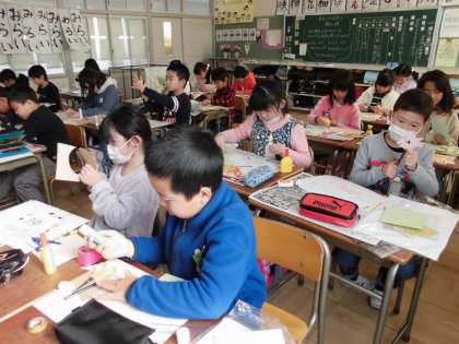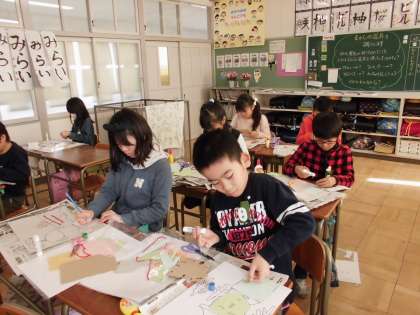 紙版画がんばっています【1月27日(金)の3年生】 公開日 2017/01/27 更新日 2017/01/27 3年 図工の時間、紙版画に取り組んでいます。さまざまな材質の紙を切り取って版を作っています。刷り上がるのが楽しみです。