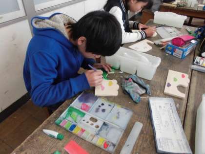 図工で作っているテープカッターがもうすぐ完成します。