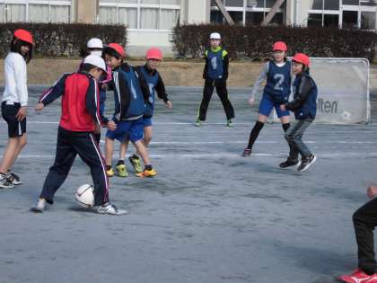 元気いっぱいです【2月3日(金)の5年生】 公開日 2017/02/03 更新日 2017/02/03 5年 外での体育はまだまだ寒いです。そんな寒さもなんのその。子どもたちは、元気にサッカーをしていました。