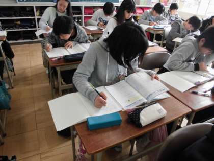 算数の授業の様子です。今日から6年間の復習に入りました。