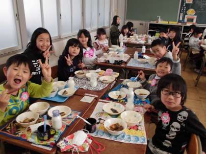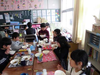 6年生と一緒に 【3月11日(土)の1年生】 公開日 2017/03/11 更新日 2017/03/11 1年 6年生と一緒に給食を食べました。今まで、お世話になったお礼を言ったり、小学校生活の思い出について話を聞いたりして、楽しい時間を過ごすことができました。