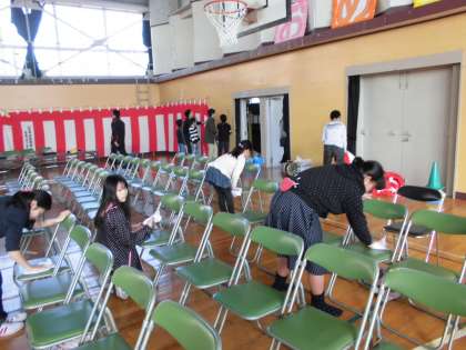 式場準備 【3月14日(火)の5年生】 公開日 2017/03/14 更新日 2017/03/14 5年 卒業式の式場準備のお手伝いをしました。紅白幕や花を飾ると、会場がとても華やかになりました。あと2日で卒業式です。5年生も体調を整えて、式に参加するようにしていきましょう。