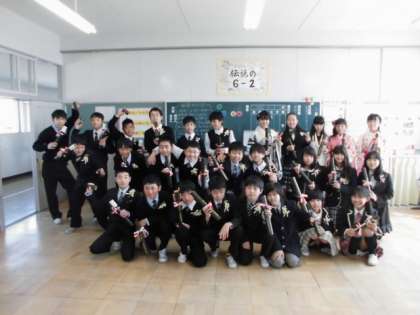 卒業おめでとう【3月16日(木)の6年生】 公開日 2017/03/16 更新日 2017/03/16 6年 写真屋さんが教室に来てくれるまでの間に取った一枚です。 卒業式が終わり、緊張も解け、いい笑顔です!!