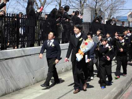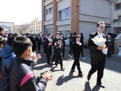第38回卒業式 その7【3月16日(木)】 公開日 2017/03/16 更新日 2017/03/16 学校行事 門出式です。 みんないい笑顔で卒業していきました。中学校でのみなさんの活躍を応援しています。 保護者の皆様・地域の皆様、ありがとうございました。