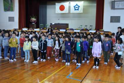 まず、転任してみえた先生方の着任式がありました。始業式では校長先生から、学校生活で大切な5つの約束についてのお話がありました。その後、1年生との対面式があり、「よろしくお願いします」とあいさつをしました。これからなかよくしていきましょうね。