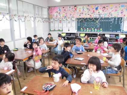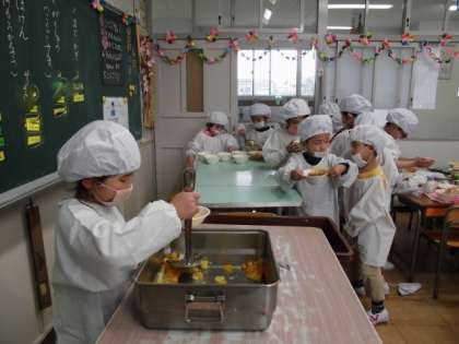 はじめての給食(4月11日の1年生) 公開日 2017/04/11 更新日 2017/04/11 1年 当番みんなで協力して準備をし、楽しく・おいしく給食を食べました。食後には、きちんと歯磨きもしました。