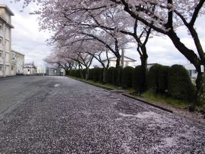 昨日の雨で、満開だった桜の花がだいぶ散ってしまいました。桜の樹の下は、桜の花びらできれいなじゅうたんが敷かれたようになっていました。