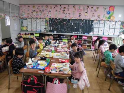 給食は おいしいね 【4月12日(水)1年生】 公開日 2017/04/12 更新日 2017/04/12 1年 初めての給食当番ですが、みんな頑張っています。友達と一緒に食べる給食は、とてもおいしくて、おかわりをしている子もたくさんいました。 国語の時間には、読み聞かせがありました。どの子も嬉しそうに聞いてくれました。