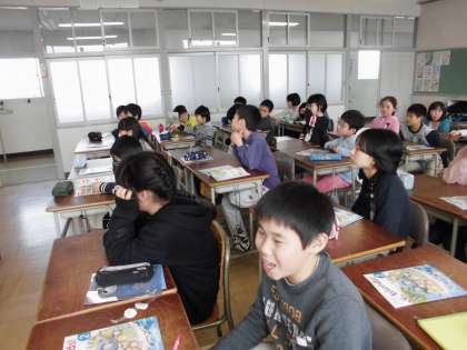 英語【4月12日(水)の5年生】 公開日 2017/04/12 更新日 2017/04/12 5年 今日から英語の勉強が始まりました。新しいALTの先生になり、先生の国のことをいろいろ教えてもらいました。
