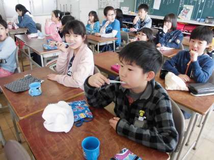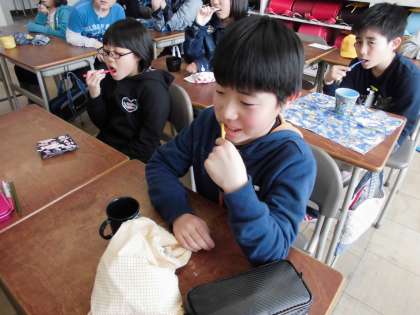 歯磨きタイムの様子です。しっかり歯を磨きました。
