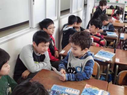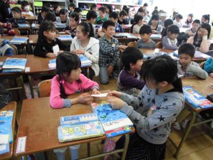 1年生のペアになる子と、名刺の交換をしました。あいさつをして握手をしました。ちょっぴり恥ずかしそうでした。