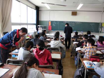 本校では、3年生以上の算数の授業において、少人数授業を行っています。現在は、ティームティーチング(TT)を中心にして進めていますが、単元や学習内容に応じて、クラスの児童を2つに分けて授業を行うこともあります。一人一人の児童と関わる時間を増やすことができ、つまづきを早く見つけることにもつながります。また、子どもが発表する回数が増えることや質問にも丁寧に答えることができます。授業が分かりやすくなることで、子どもの学習への集中力が増すという面もみられました。いろいろな工夫をしながら、子どもの学力向上をめざして取り組んでいきます。