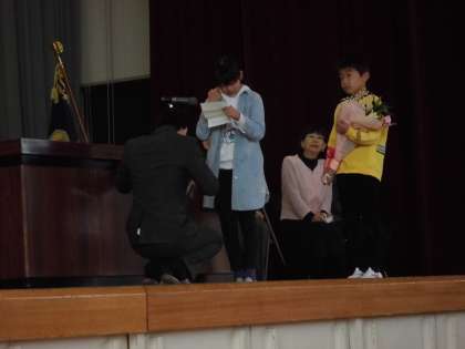 退任式がありました 【4月16日(日)の5年生】 公開日 2017/04/16 更新日 2017/04/16 5年 退任式がありました。 お世話になった先生方へ、感謝の手紙と花束を代表の人が渡してくれました。 5年生の代表からも、心のこもった手紙と花を渡しました。