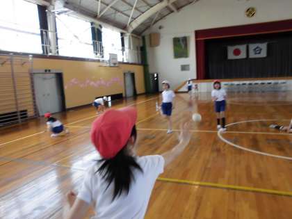 投げて打って 【4月18日(火)の4年生】 公開日 2017/04/18 更新日 2017/04/18 4年 ハンドベースボールの練習で、お互いに投げて打ち返す練習をしました。ボールが変なほうへ行くこともありましたが、投げられたボールを上手に打ち返すことができました。