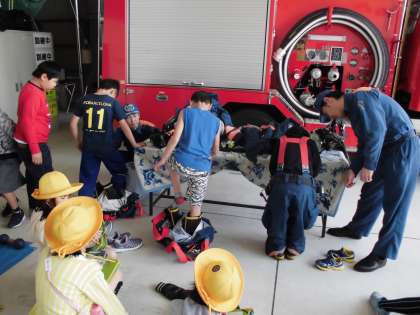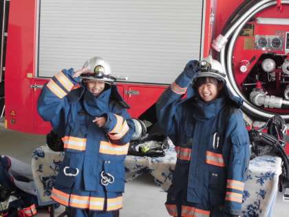実際に防火服を着る様子を見たり、説明を聞いたりと様々なことを学ぶ機会がありました。