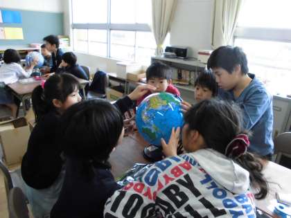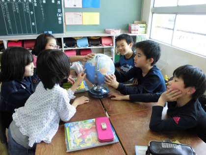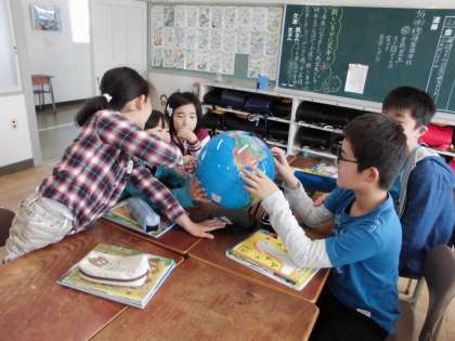 地球儀を使って【4月19日(水)の5年生】
