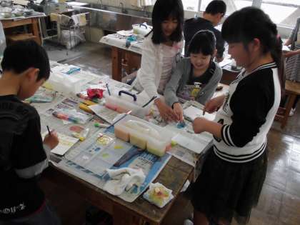 絵具で夢もよう!楽しんで活動しました!【4月21日(金)の4年生】 公開日 2017/04/21 更新日 2017/04/21 4年 図工の時間では、絵具をビー玉や段ボールの切れ端など様々な道具を使っていろいろな模様を作りました!どんな作品に仕上がるのかな??楽しみですね!