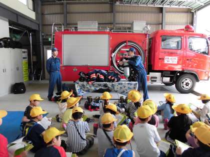 (上)4年生が新しくできた消防署へ見学に行きました。