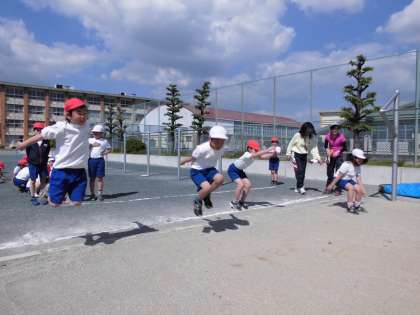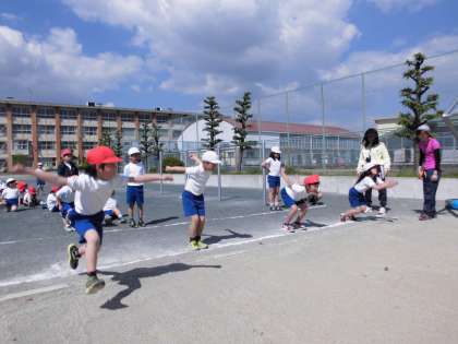 遠くまで跳べたかな 【4月24日(月)の2年生】 公開日 2017/04/24 更新日 2017/04/24 2年 体育で立ち幅跳びの計測をしました。腕を振って勢いをつけて、遠くへ跳べるように頑張りました。
