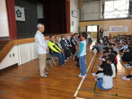 今日の集会は、見守り隊のみなさんへこれからよろしくお願いしますという気持ちを伝えました。代表児童である6年生は、大きな声で発表できていました。班長旗の使い方やあいさつにもさらに気を付けて登下校したいと思います。