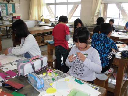 素敵な作品ができました【4月27日(木)の4年生】 公開日 2017/04/27 更新日 2017/04/27 4年 図工の時間に、前回作った紙を使って作品を作りました。切ったりはったり工夫を凝らして素敵な作品ができました。片付けや掃除も進んでできました。