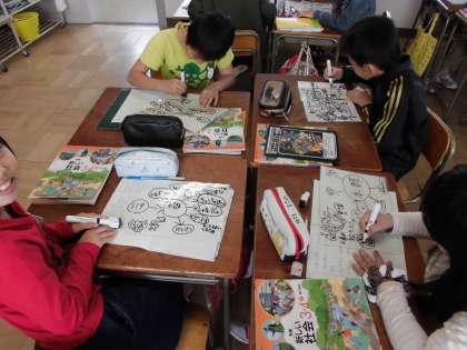 119番をかけた後は・・・?【4月27日(木)の4年生】 公開日 2017/04/27 更新日 2017/04/27 4年 社会の授業では、火事が起きてしまった後、119番をするとどこへ連絡がいくのか、なぜそこに連絡がいくのか、ということを考えました。いろいろな意見を出し合って考えを深めていました。
