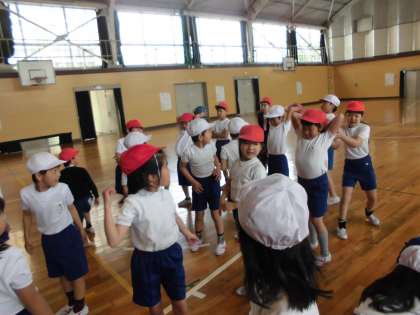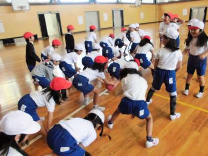 力を合わせて【4月27日(木)の2年生】 公開日 2017/04/28 更新日 2017/04/28 2年 今日は、体育でボールを使って遊びました。「はい!」と友達にテンポよくボールを渡して楽しく遊ぶことができました。