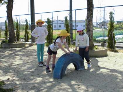 ふれあい遊びを楽しみました(その2)【5月2日(火)の4年生】 公開日 2017/05/02 更新日 2017/05/02 4年 お弁当の後、2年生のペアと遊びました。自分たちが楽しいのではなく、2年生が楽しめるかを第一に考えて一生懸命考えた遊びでした。高学年の大変さも感じた1日でした。疲れたね。