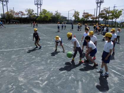 ふれあい弁当の後は外へ出て元気に活動をしました!ドッジボールなどの遊びを考えて一緒に楽しむことができました。