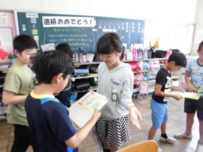 英語であいさつ 【5月3日(水)の4年生】 公開日 2017/05/03 更新日 2017/05/03 3年 ペアになって英語であいさつをしました。眠い、元気、おなかがすいたなどいろいろな表現を使って、友だちの会話を楽しみました。