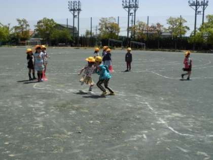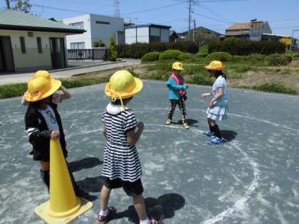 ジグザグコースや渦巻コースを使って、じゃんけんゲームをしました。